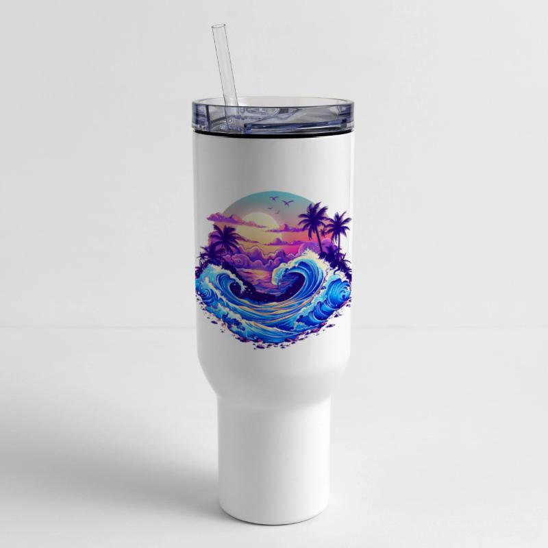 - Travel tumbler with lid and handle