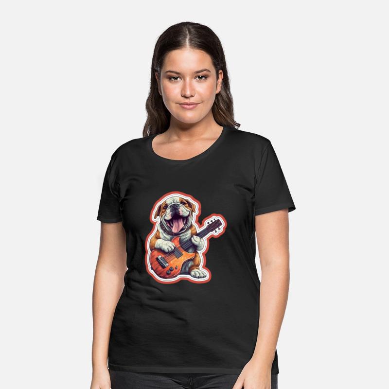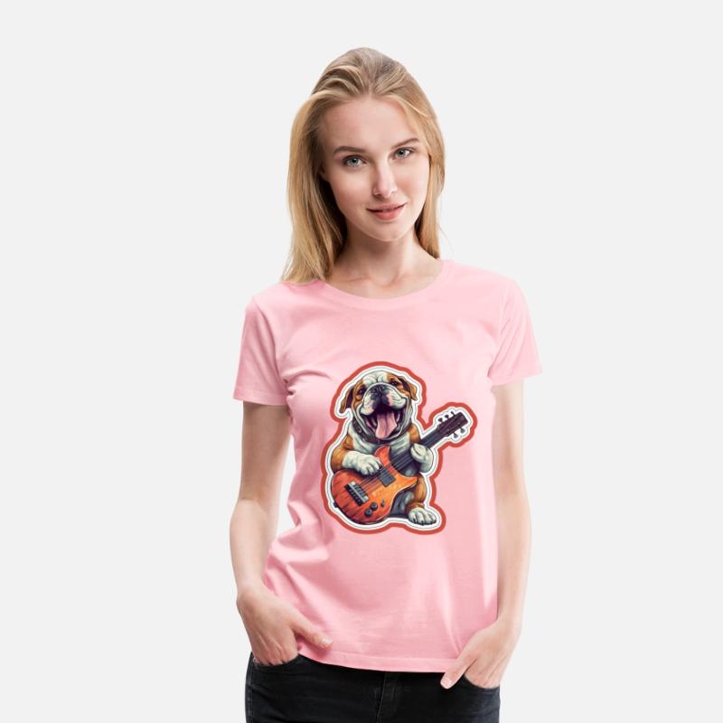 Bulldog playing Acousitc rock guitar dog
