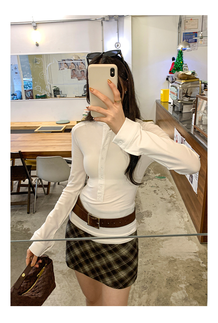 White Inner Layer Long Sleeve T-Shirt for Women